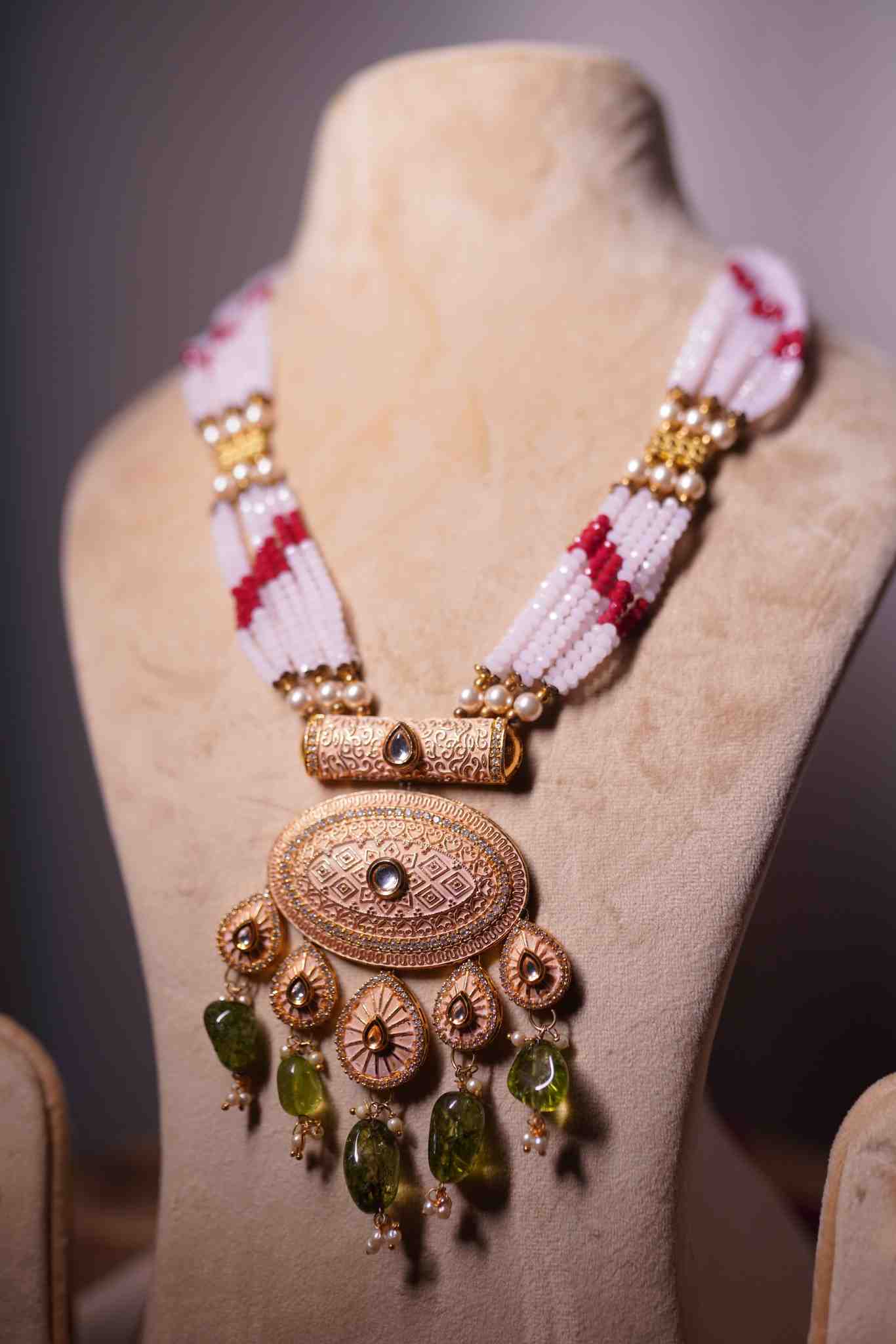 Measurements: Mala Length: 18–20 inches, Pendant Drop: 8–9 cm, Earrings Length: 5–6 cm