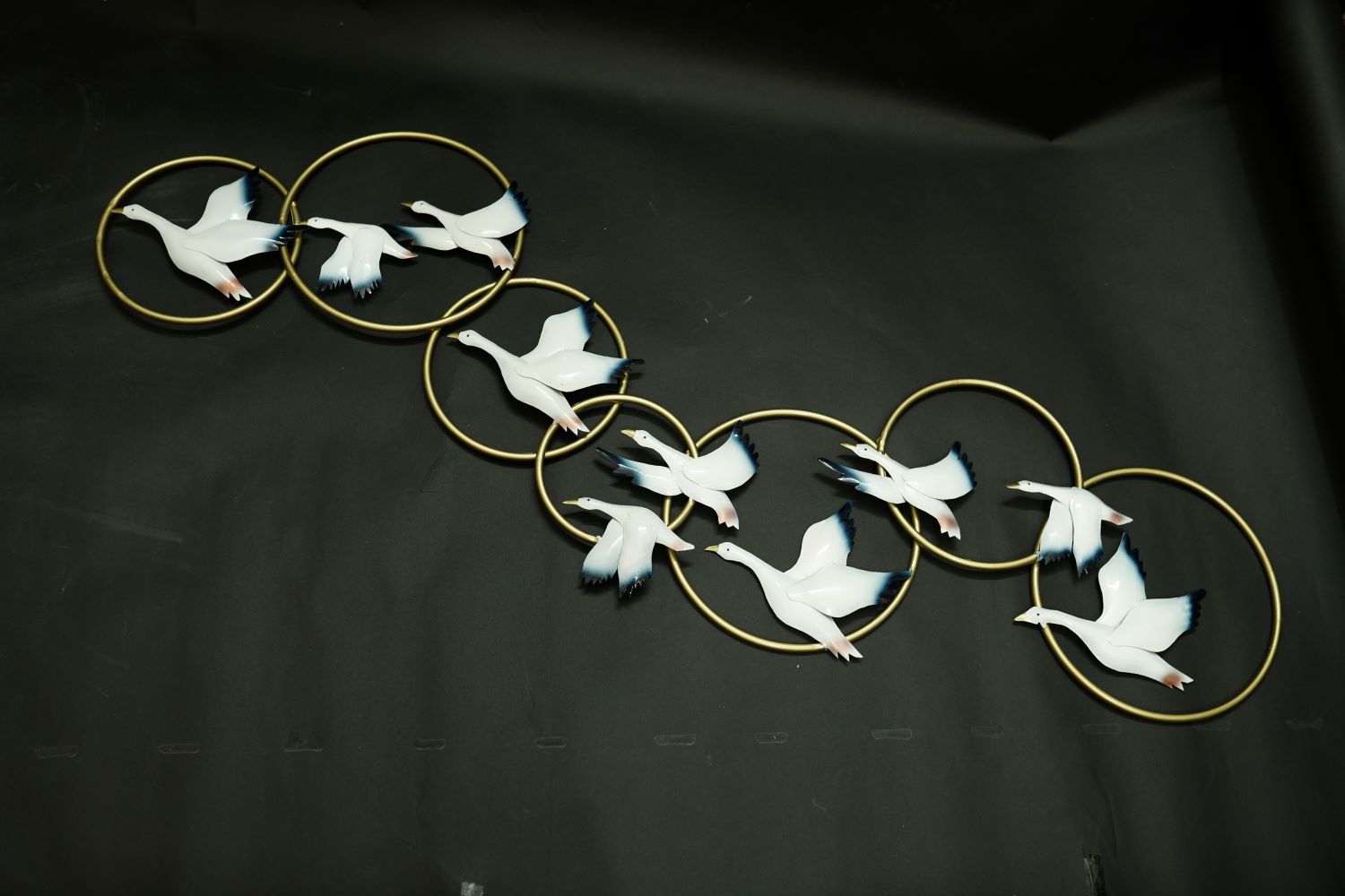 Content: Traditional metalworking with layered construction. Hand-welded golden rings frame each bird, while artisan-applied colors bring lifelike dimension and energy to your walls.